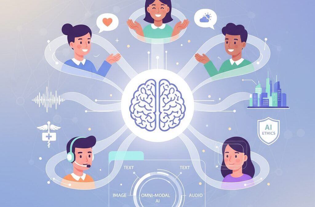 オムニ・モーダルAIとは、テキストや画像、音声といった複数の情報を単に組み合わせる段階を超え、人間の知覚に近いかたちで同時かつ統合的に理解する人工知能を指します。従来のマルチモーダルAIが「別々に理解した結果を後からつなぐ」発想だったのに対し、オムニ・モーダルAIは設計段階から全モダリティを等価に扱い、一つの知能として処理する点が決定的に異なります。